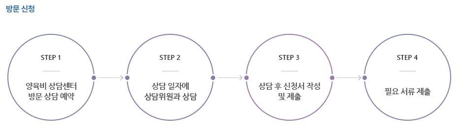 양육비이행관리원 홈페이지(www.childsupport.or.kr)에서 온라인 신청하거나 우편으로 신청가능합니다.